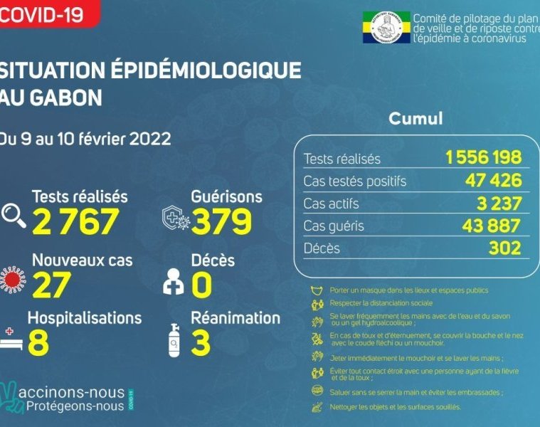 Coronavirus au Gabon : point journalier du 10 février 2022