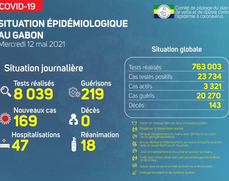 Coronavirus au Gabon : point journalier du 12 mai 2021