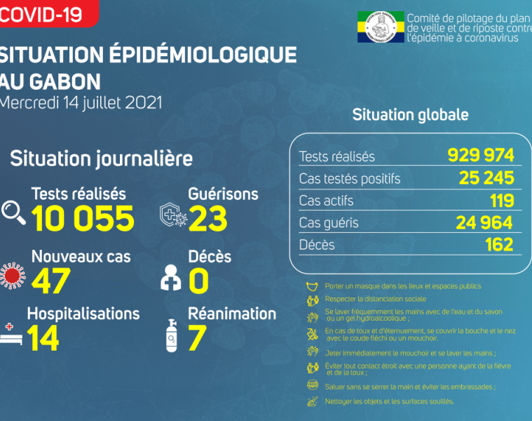 Coronavirus au Gabon : point journalier du 14 juillet 2021