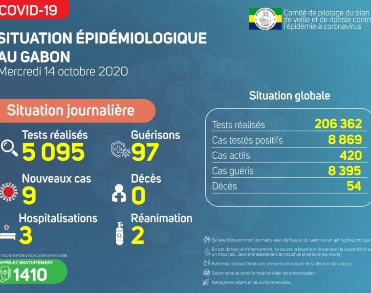 Coronavirus au Gabon : point journalier du 14 octobre 2020
