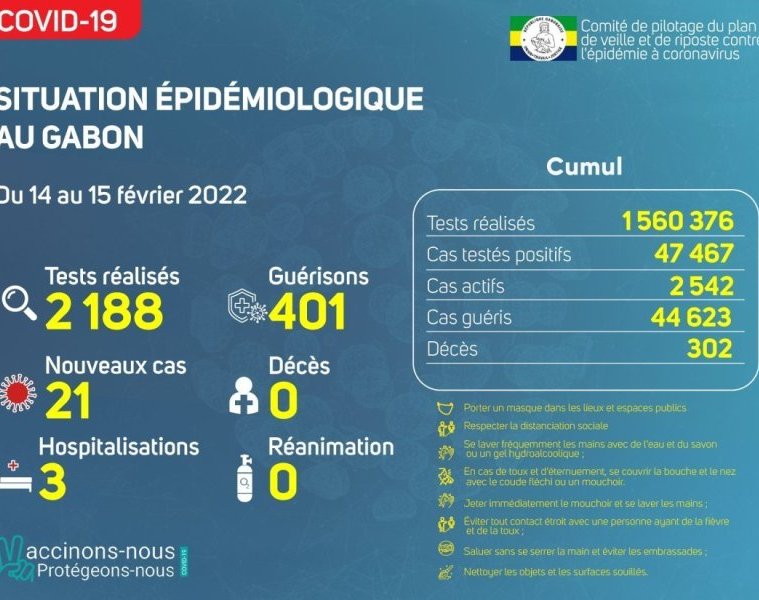 Coronavirus au Gabon : point journalier du 15 février 2022