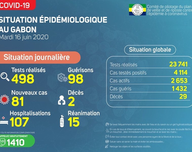 Gabon Matin vous livre le point journalier du Comité de pilotage du plan de veille et de riposte contre l’épidémie à Coronavirus au Gabon du 16 juin 2020.