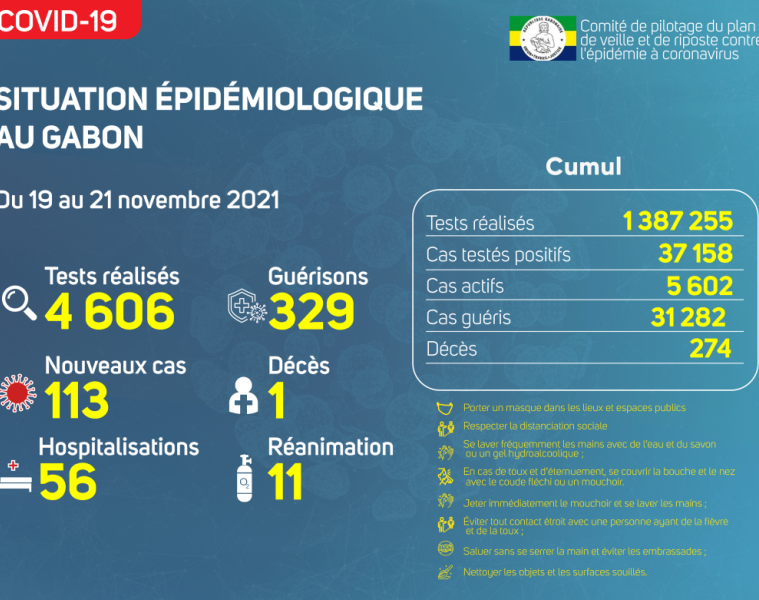 Coronavirus au Gabon : point journalier du 21 novembre 2021