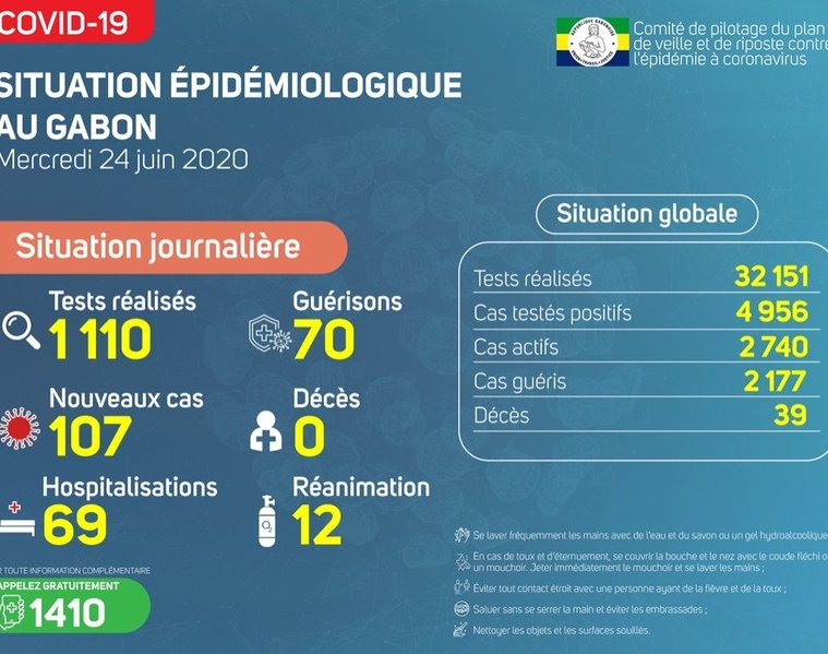 Gabon Matin vous livre le point journalier du Comité de pilotage du plan de veille et de riposte contre l’épidémie à Coronavirus au Gabon du 24 juin 2020.