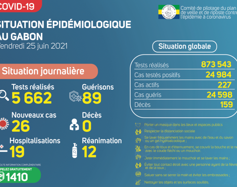 Coronavirus au Gabon : point journalier du 25 juin 2021