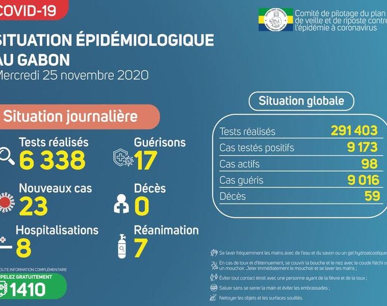 Gabon Matin vous livre le point journalier du Comité de pilotage du plan de veille et de riposte contre l’épidémie à Coronavirus au Gabon du 25 novembre 2020.
