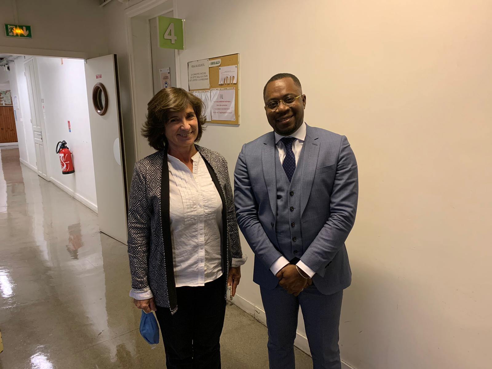 Le jeune chercheur exprimant sa gratitude à sa directrice de thèse Laure Quennouëlle-Corre, directeur de recherches, CNRS-CRH.