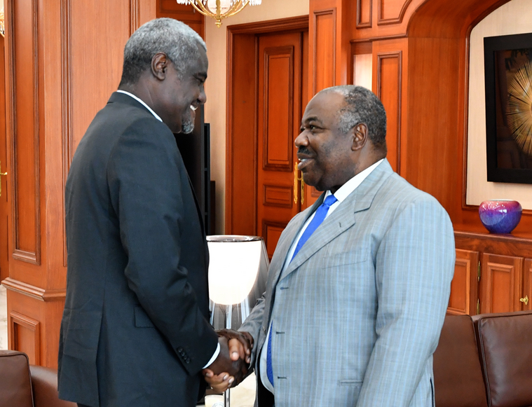 Ali Bongo s’est entretenu ce lundi avec le président de la Commission de l’Union africaine (UA), M. Moussa Faki Mahamat, accompagné de son conseiller stratégique principal, M. Mohammed Hacen Ould Lebatt et de son porte-parole, Mme Ebba Kalondo.
