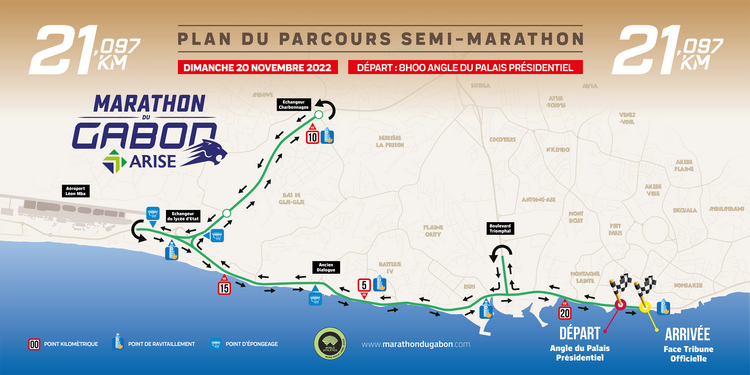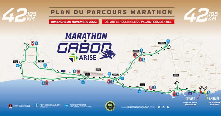 Pour l’épreuve reine, le marathon, les coureurs passeront par l’aéroport jusqu’au carrefour dit « Gigi » dans la commune d’Akanda. Ils prendront la droite, en direction du carrefour Delta en passant par les artères de la commune, pour ensuite ressortir au rond point de la Bodega et prendre la route de la Sablière jusqu’au Jardin de Jade avant de poursuivre par le Bord de mer jusqu’à la tribune officielle.