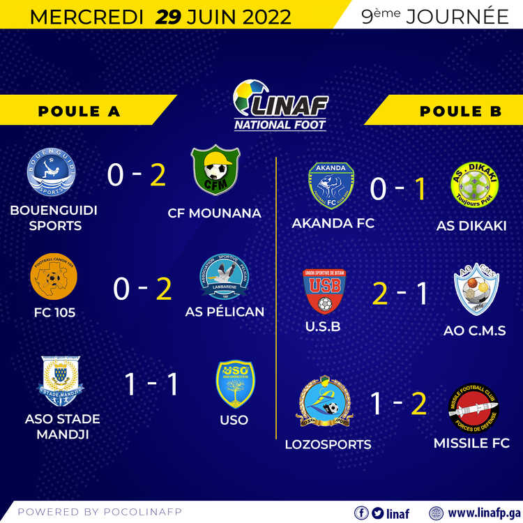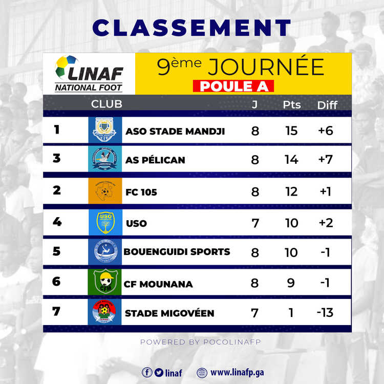 Une défaite de deux buts à zéro qui arrange les Oyemois d’USO (4e) qui ont tenu en échec (1-1), au stade Pierre Claver Divoungui de Port-Gentil, l’équipe locale, l’Association Omnisport Stade-Mandji qui reste leader de la poule B avec 15 points.