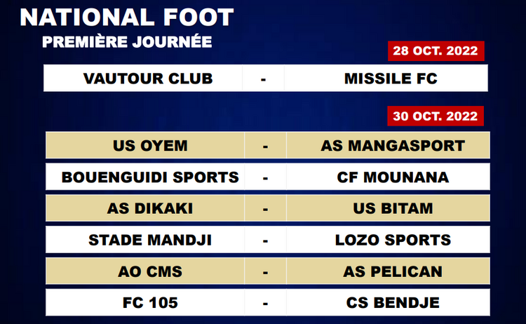 Début de la nouvelle saison du National-foot 1 ce vendredi 28 octobre 2022 à Libreville, la suite de cette journée se poursuivra ce dimanche 29 octobre sur l’ensemble des stades retenus du pays notamment à Koulamoutou, avec l’explication Bouenguidi-Sports face au Centre de Formation Mounana, un choc qualifié amicalement par les amoureux du football de « Nzébico ».