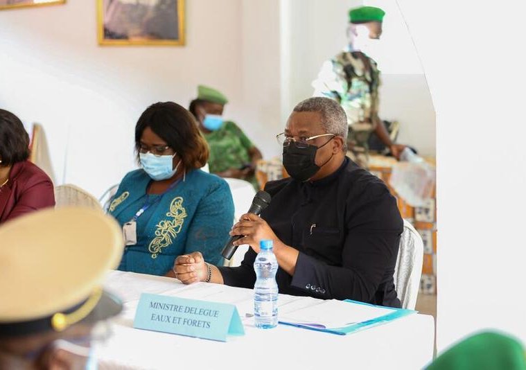 Le ministre délégué auprès du ministre des Eaux et Forêts, de la Mer, de l’Environnement, chargé du Plan Climat et du Plan d’Affectation des terres, Charles Mve Ellah, a poursuivi les concertations provinciales ce jeudi 15 juillet sur la gestion du conflit Homme-Éléphant (CHE) vendredi, dans la ville de Tchibanga, dans la province de la Nyanga, en présence du ministre Délégué auprès du ministre de l’Emploi, de la Fonction Publique, du Travail et de la Formation Professionnelle, Aubierge Sylvie Ngoma, du maire central, Jean Charles Yembit Yembit et du gouverneur, Nicole Nouhando.