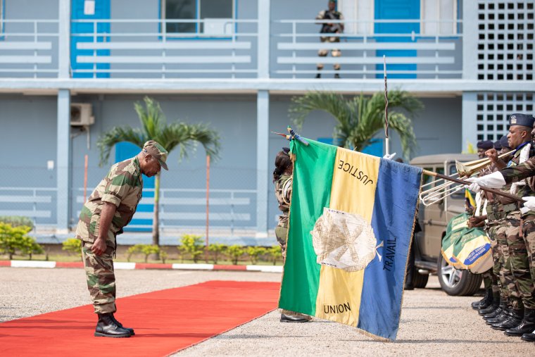 Accueilli à son arrivée par Madame le Ministre de la Défense Nationale, accompagnée du Gouverneur Militaire de la Place de Libreville et du Chef d’Etat-Major Particulier du Président de la République, le Chef de l’Etat a reçu les honneurs militaires, effectué le passage en revue des troupes et s’est incliné devant l’étendard. Il a ensuite procédé à son adresse à l’endroit des officiers généraux, officiers, sous-officiers et militaires du rang présents.